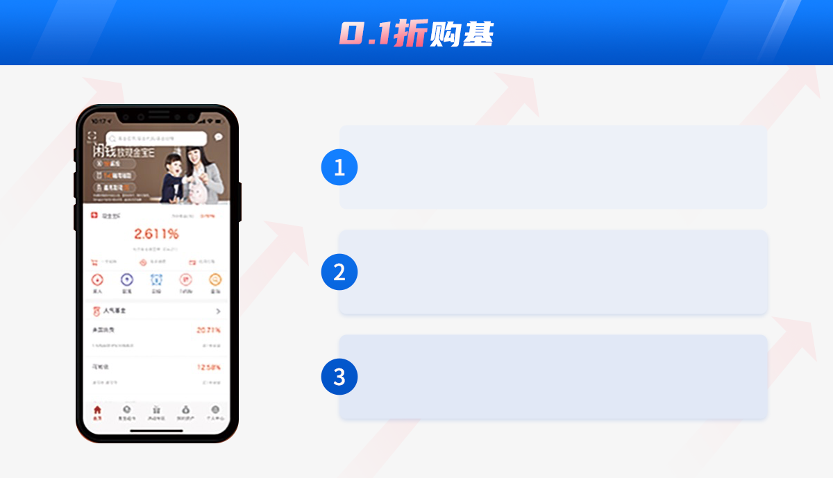 申購成功后,點(diǎn)擊買入"熱門"基金,支付方式選擇"現(xiàn)金寶E",即可立享0.1折優(yōu)惠。